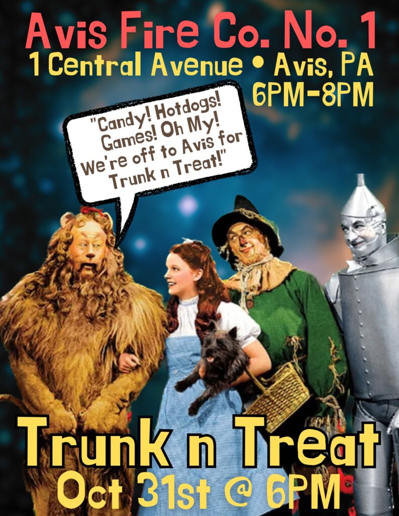 Trunk or Treat courtesy of Grace Fellowship Oct 31st from 6PM-8PM enter if you dare the Borough of Avis, PA for our annual Trunk n Treat! Family Friendly Fun and lots of goodies too!