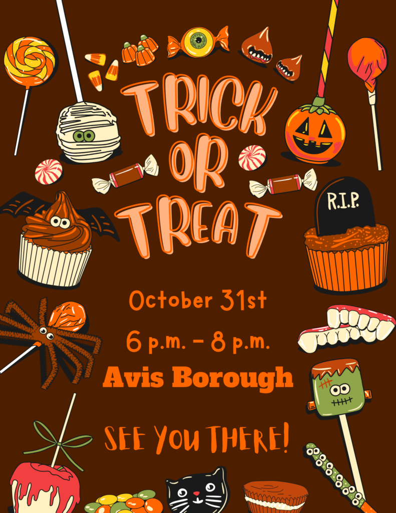 Enjoy a fun filled spooky night throughout the borough of Avis.